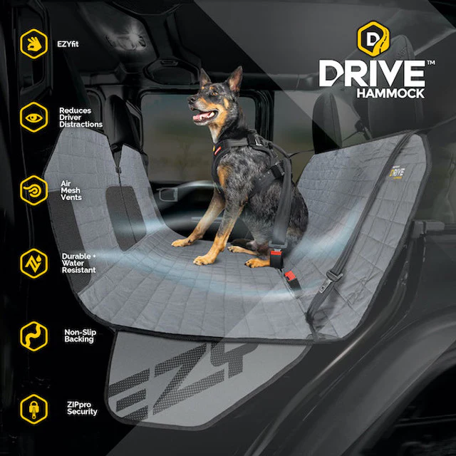Perfect for any dog size and vehicle, the Drive Hammock is also extremely easy to clean after use. All dirt and debris that is caught by the cover can easily be removed with a quick shake and a wash in warm soapy water. The water-resistant polyester cover allows dirt and stains to be simply wiped down after each use.